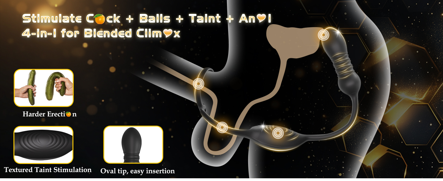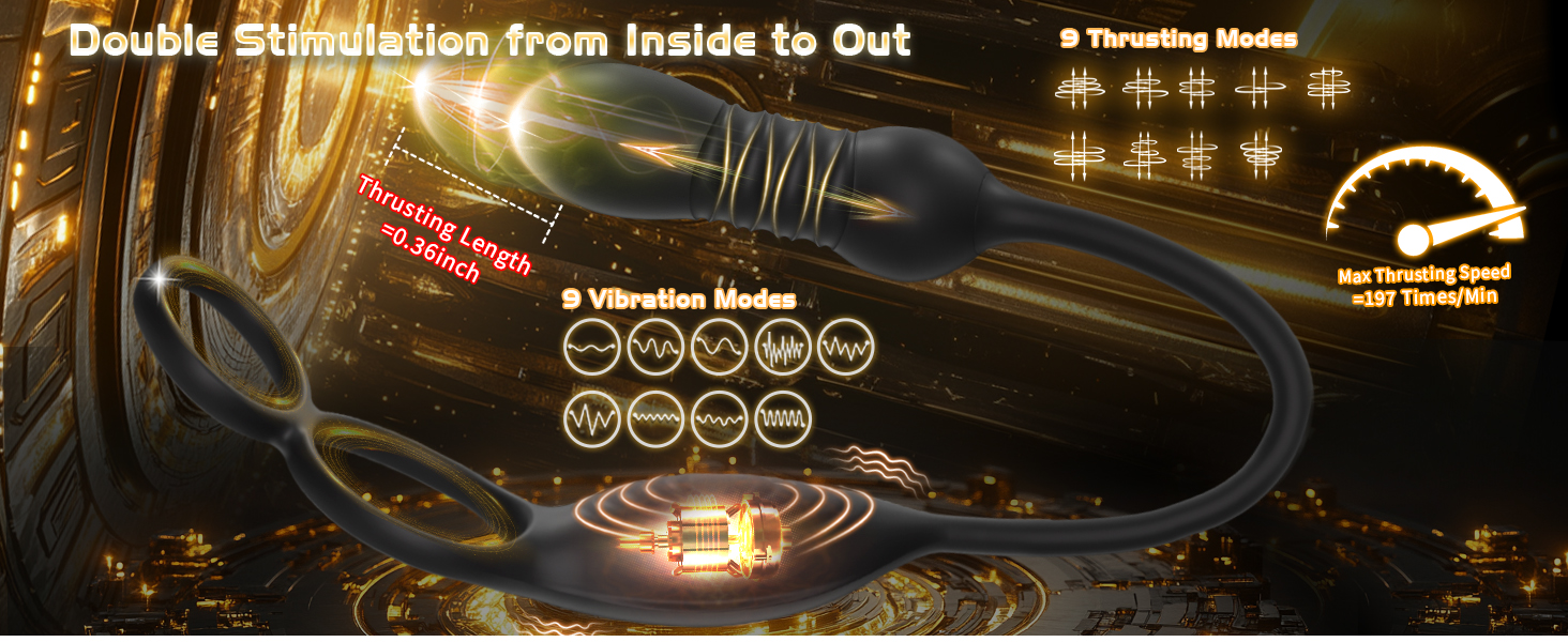 Dual motors, 9 vibration modes - Choose from 9 vibration frequencies! The powerful, buzzing dual motors sit behind the testicles, against the perineum (clitoris), and the wired butt plug easily slides inside, buzzing to stimulate your P-spot! This toy stretches comfortably around the base of the penis and testicles, ensuring comfortable insertion.